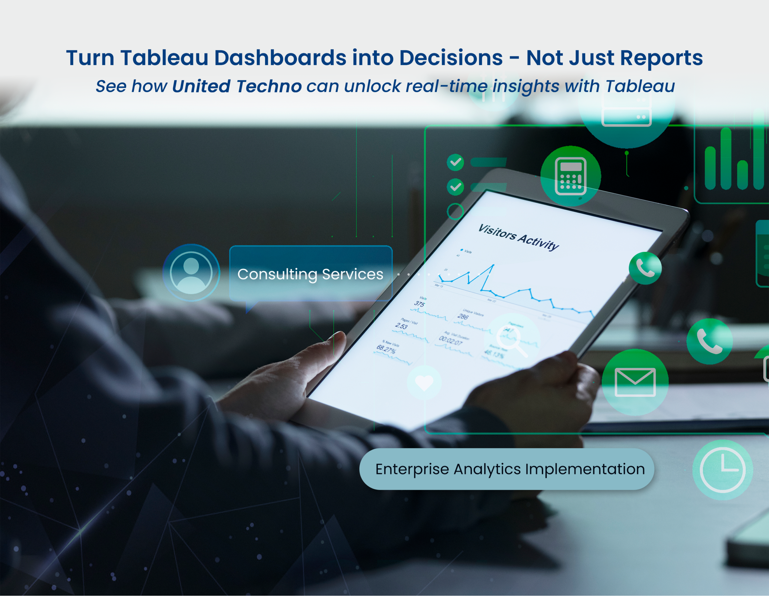 Your business runs on data, but the real value comes from how quickly teams can interpret it and act on it. United Techno’s Tableau Consulting service & Development Team can help you build a modern analytics foundation where dashboards load fast, data stays trusted, and every user, from leadership to analysts, can explore insights confidently.